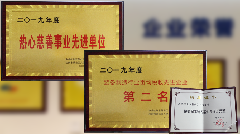 近日,我司收到蕭山區(qū)政府相關(guān)部門及蕭山區(qū)慈善總會頒發(fā)的“裝備制造行業(yè)畝均稅收先進(jìn)企業(yè)第二名”、“熱心慈善事業(yè)先進(jìn)單位”及“捐贈留本冠名基金會壹佰萬元整”證書。 其中,“熱心慈善事業(yè)先進(jìn)單位”,