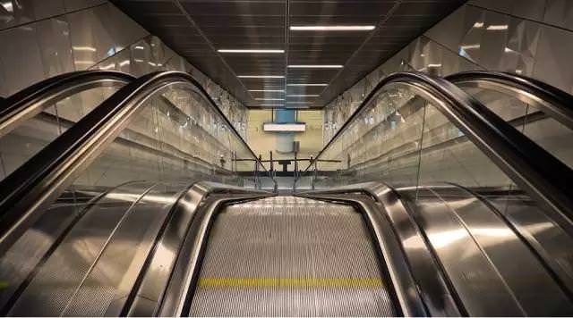自動扶梯的不銹鋼光亮,無水印、手印和污跡;